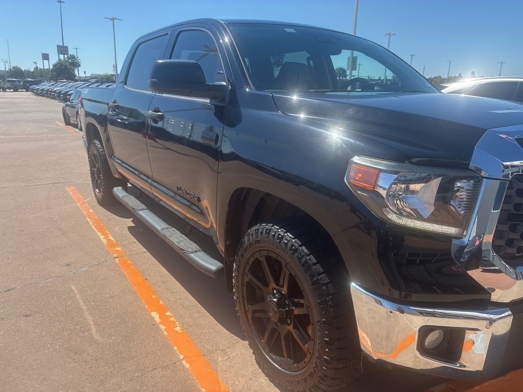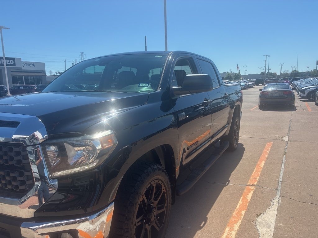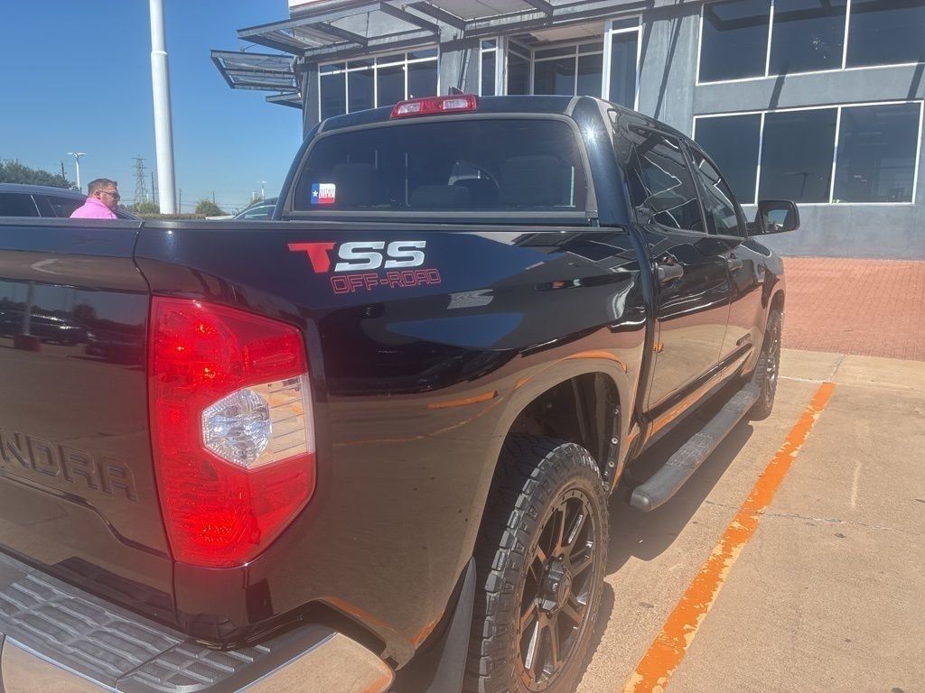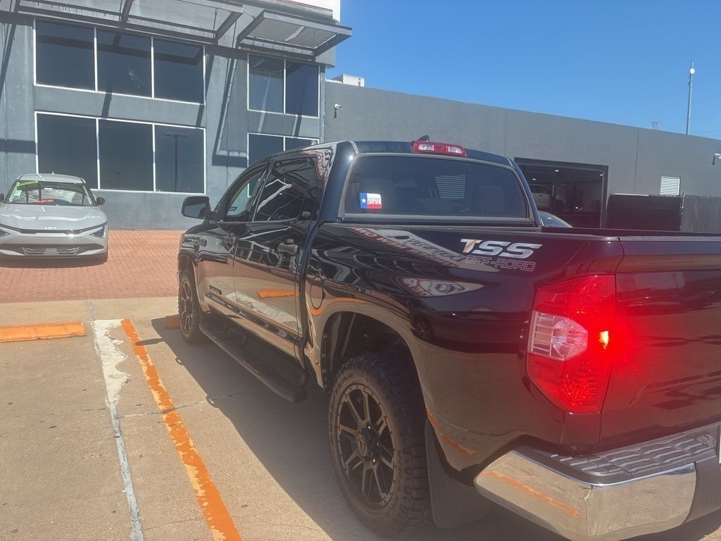 The brawny chiseled look of the Tundra is the ideal platform for the optional TRD Pro Off-Road Package. Model specific features include: split five-spoke TRD Off-Road Package alloy wheels with black accents and all-terrain P275/65R18 tires, trail-tuned Bilstein shock absorbers, engine skid plate, fuel tank skid plate, front tow hooks, LED fog lights (SR5), TRD Off Road floor mats (SR5/Limited), and bed side TRD Off-Road decal.